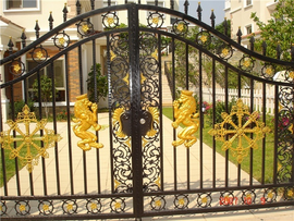 2.鐵藝門的材質(zhì)與工藝,鐵藝大門(mén)的材質與工(gōng)藝有很多,要根據(jù)實際情況進行選擇和使用(yòng)。鐵藝門的材質有:方管、方鋼(gāng)、扁鐵、圓鋼等。**鐵藝門(mén)的材質都采用國(guó)標(biāo)Q-23**級(jí)鋼,青島德宏鐵(tiě)藝也是(shì)使用這種鋼材(cái),保證鐵藝(yì)大門的質量。鐵藝大門使用的工藝:冷焊技術、二氧化碳保護焊(hàn)技術相結(jié)合的現(xiàn)代化工藝,現代化拋(pāo)丸工藝,除鏽清理效果和鍍鋅防鏽處理工藝,配合現代化的噴塑工藝相結合,使鐵藝門的防鏽效果大大加強,延(yán)長了鐵藝大(dà)門的使用壽命。